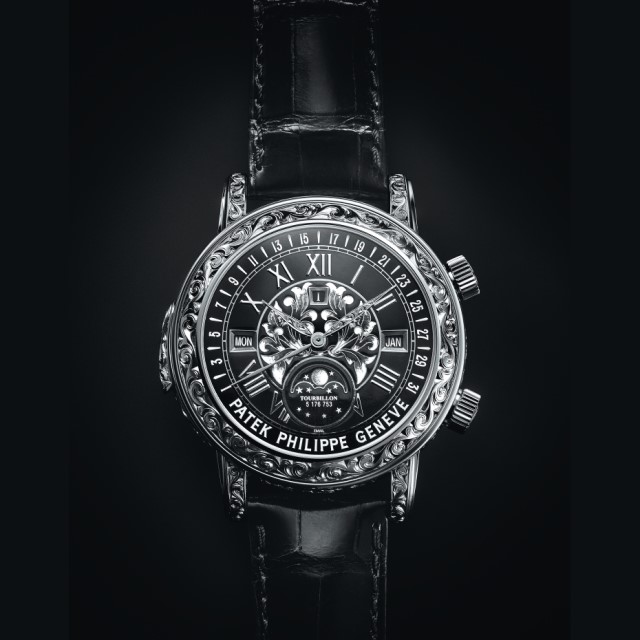 さらにダブルフェイス仕様で、北半球の星空が24時間動く、月を含む星座図にすることもできます。まだ、他にも様々なすぐれた機能や仕様がありますけど、さらに手作業で浮き彫りが施され、素材から仕上げまで、パテック フィリップの希少なハンドクラフト技術が用いられているそうです。
