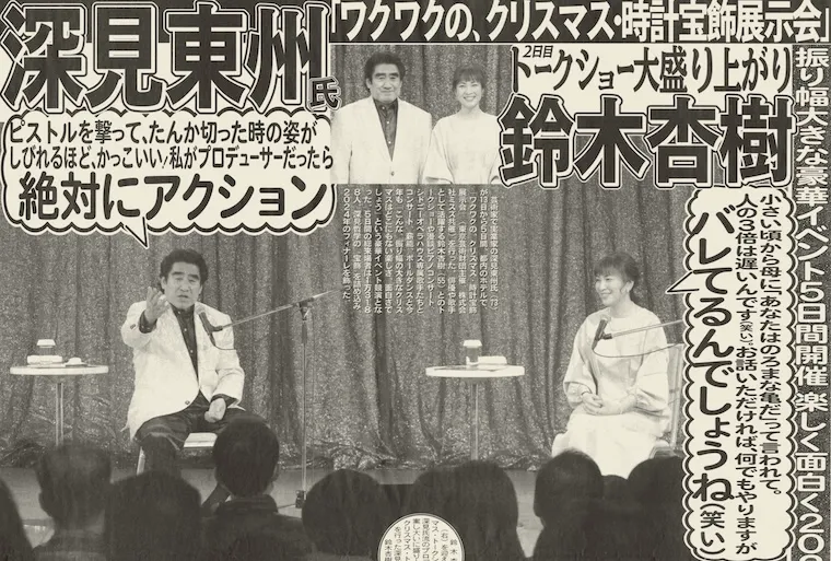 2日目の14日は女優、鈴木杏(55)をゲストに迎え「クリスマス・トークショー!!」を行った。 ミュージックフェア」の司会者としてもおなじみの鈴木。深見氏は兵庫県の西宮市、鈴木は神戸市出身とあって、共通の “地元トーク” で盛り上がった。
