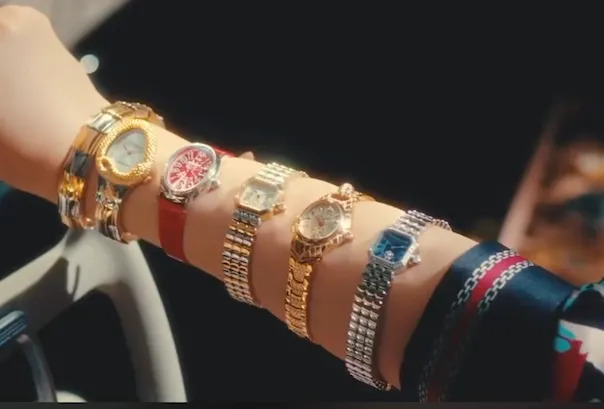 腕にたくさん時計をつけるのは、HANDA Watch Worldのいつもの特徴ですけど、今回は足にもつけてますね。足が細いんでしょうね〜