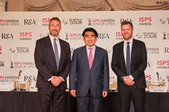 青木功さんは、「格式あるシニアオープンの冠スポンサー就任は、これまでの半田会長、ISPSの方々の取り組みが評価されたことだと思います。あと15年若ければ、選手として出場したかった」
